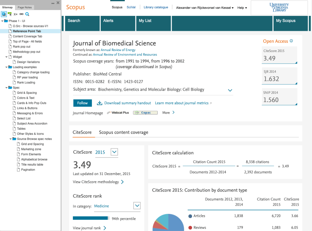 CiteScore was a project I took on shortly after joining Scopus. This was a high profile project to introduce a new journal metric to compete with the rival impact factor. I initially took on the work with a UX colleague, but eventually took on all the responsibility for the project. My work included strategy, design, and user testing.